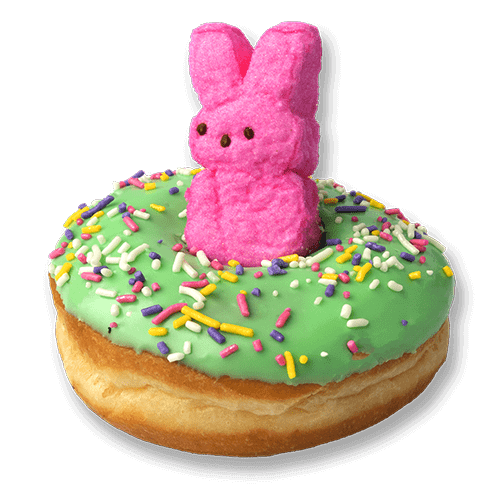 Glazed raised doughnut filled with housemade raspberry jelly topped with creamy peanut butter, vanilla cake crumble and a drop of jelly