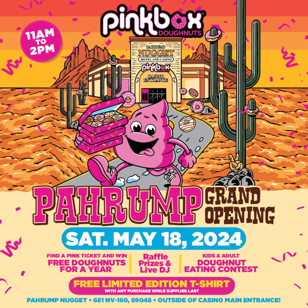 LAS VEGAS – On Saturday, May 18 from 11 a.m. to 2 p.m., the award-winning and wildly popular Pinkbox Doughnuts® will hold a grand opening extravaganza for its new shop at the Pahrump Nugget Hotel & Casino, located at 681 Hwy. 160.