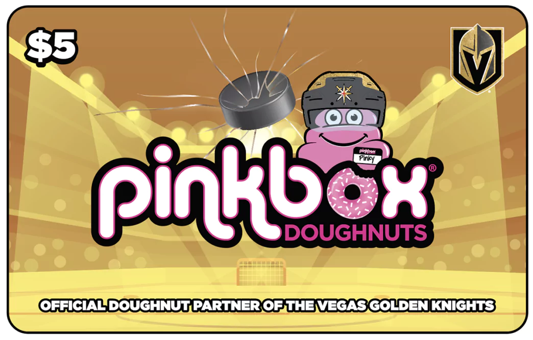 “Pinkbox Doughnuts’ partnership brings so much fun and excitement to our team and our fans,” says Kerry Bubolz, president & chief executive officer of Vegas Golden Knights. “We are grateful for Pinkbox’s commitment to the Las Vegas Valley and know our fans will love using those gift cards to pick up some of their specialty VGK or hockey-inspired doughnuts.”