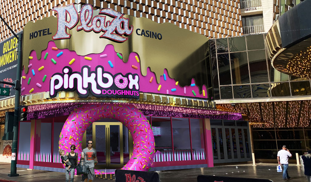 Through an oversized, 3D doughnut with sprinkles entrance on Main Street, Pinkbox Doughnuts will satisfy guests’ cravings for its delicious and fun creations. From a 16-foot-long glass doughnut display case, Pinkbox will sell its full line of over 70 different flavors of doughnuts, from classics and signature creations to Doughcros® and vegan, including delicious favorites like the Plain Face Doughcro®, Blueberry Face Doughcro®, Vegas Cream, and the beloved PINKY® doughnut that is the face of Pinkbox Doughnuts®, a vanilla cake topped with white buttercream and pink icing shaped as a Pooh®. The interior décor of the 1,200 sq. ft. store will mirror Pinkbox’s most recent locations across the valley with its pink floor stripes, 3-dimensional sprinkles, coffee spill and signature pinks drips on the walls.